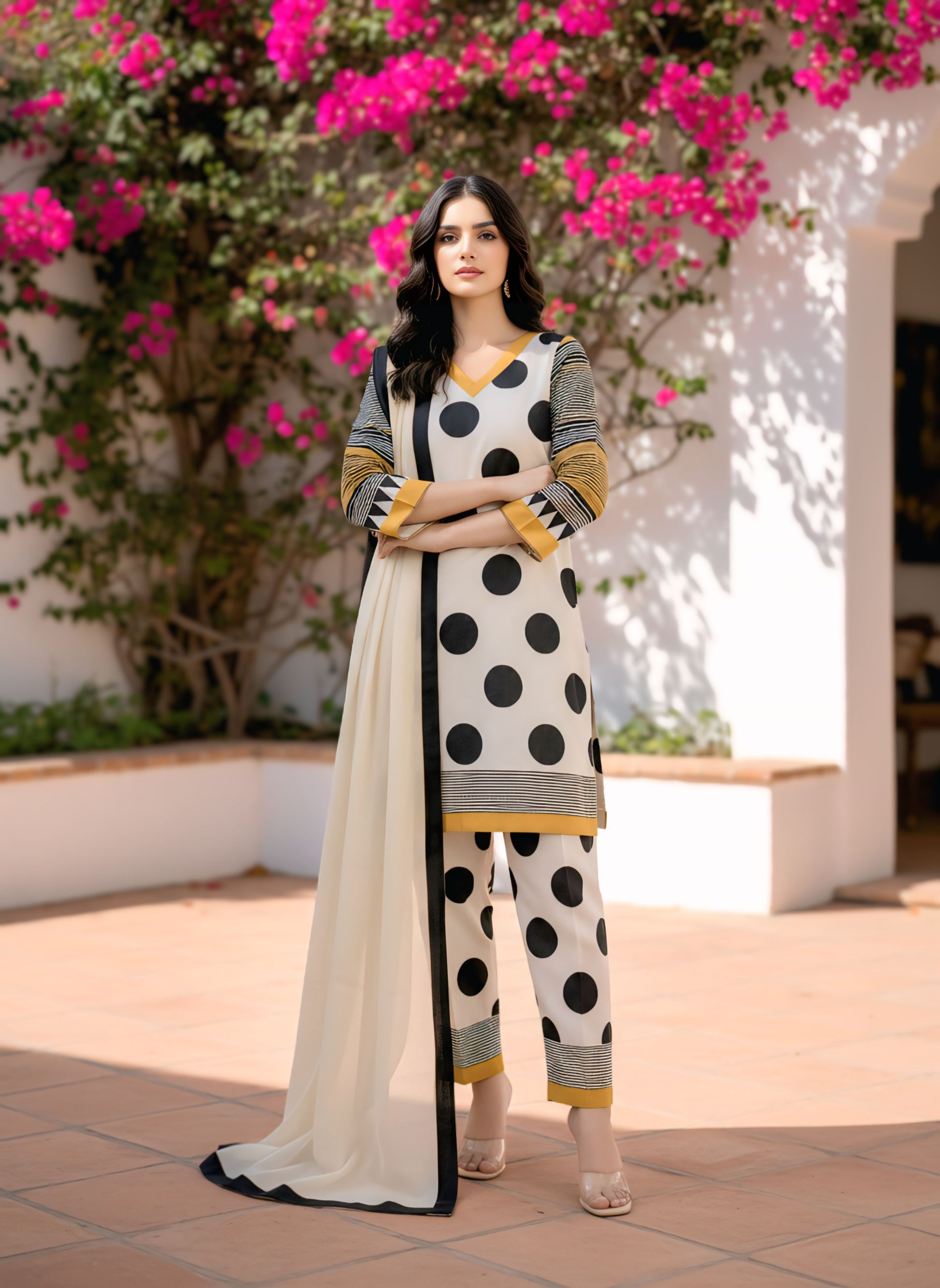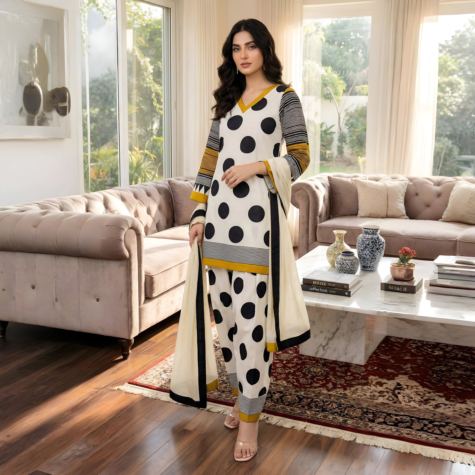 Polka Dot Stitched 3Pc Suit